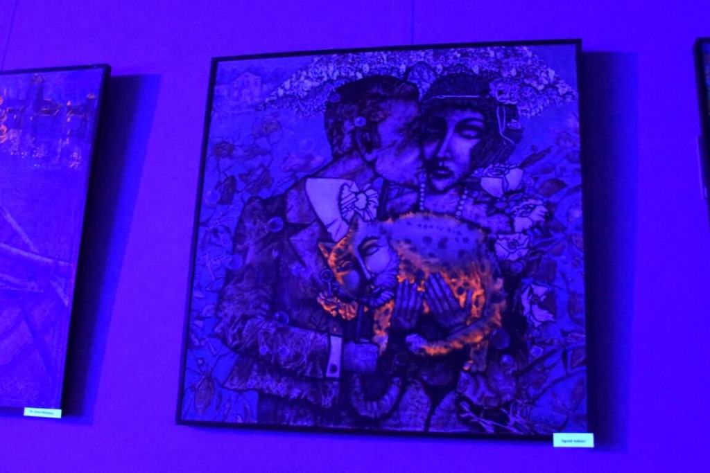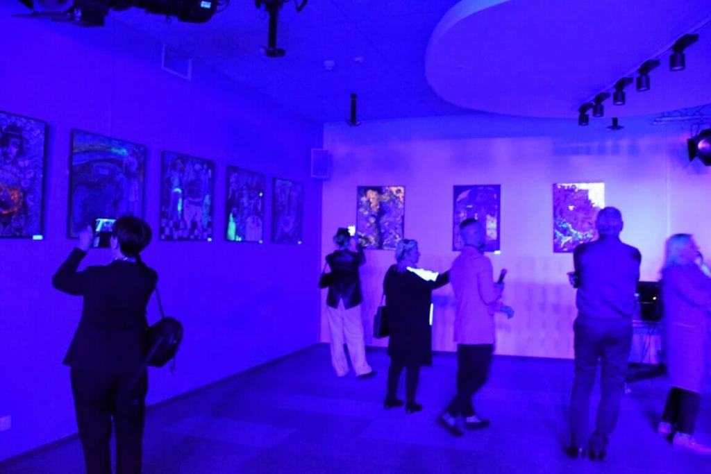 A standout feature of the exhibition was the imaginative use of ultraviolet lighting to illuminate the artworks. This innovative approach highlighted the bright elements of Netsko’s paintings, creating a mesmerizing “glow” effect that enchanted viewers, providing a distinctive experience both in daylight and in the darkened ambiance of the exhibition space.